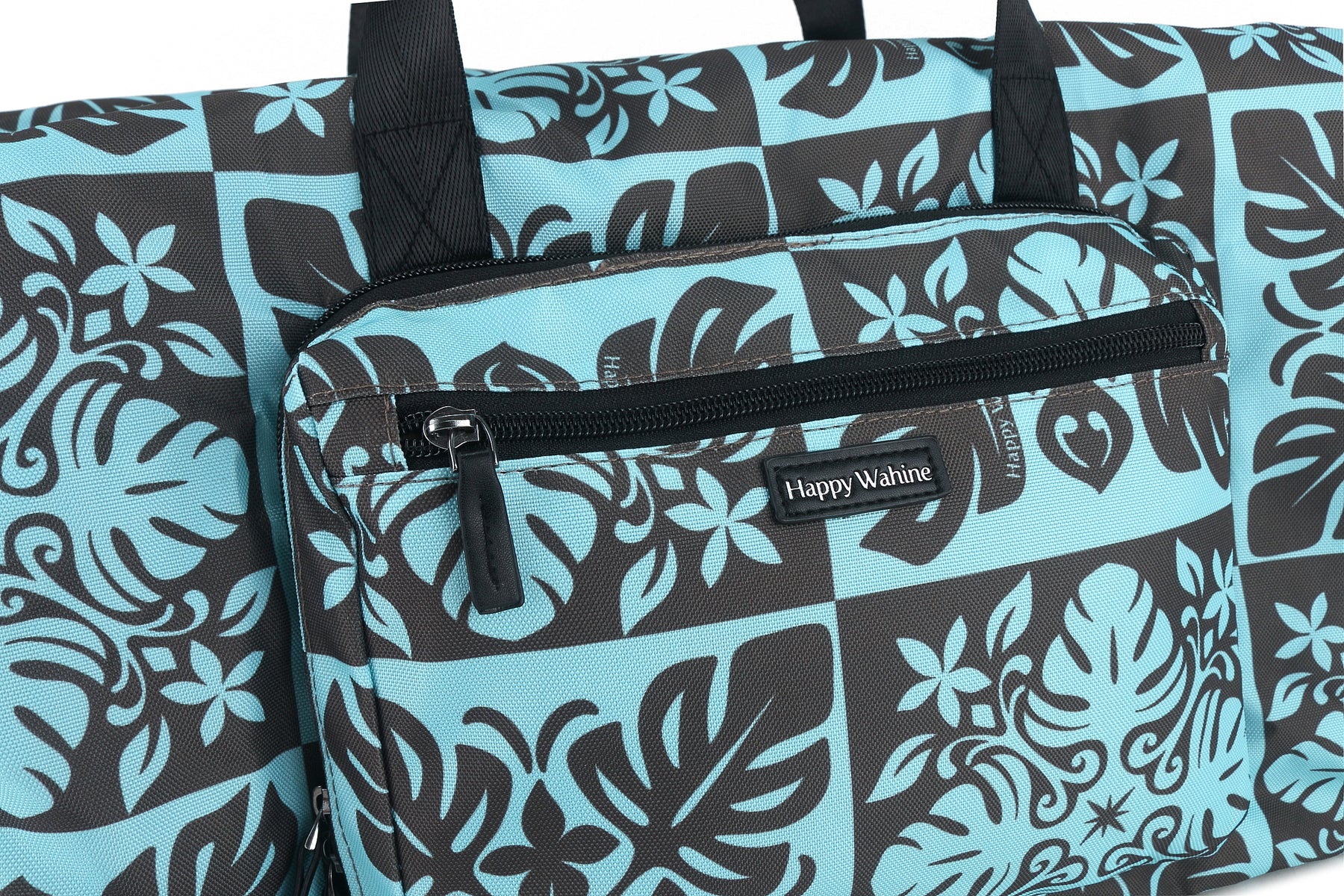 Saw this handbag on the website and ordered it. It has exceeded my expectations, perfect size for wallet, phone, glasses and more, but not too big. There's a beautiful, subtle Hawaiian pattern in the bag material. It can be worn cross-body or with strap removed, a handbag. As with all Happy Wahine products, I'm very pleased with this purchase.