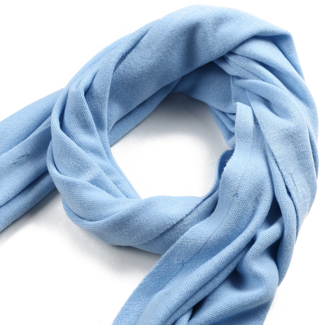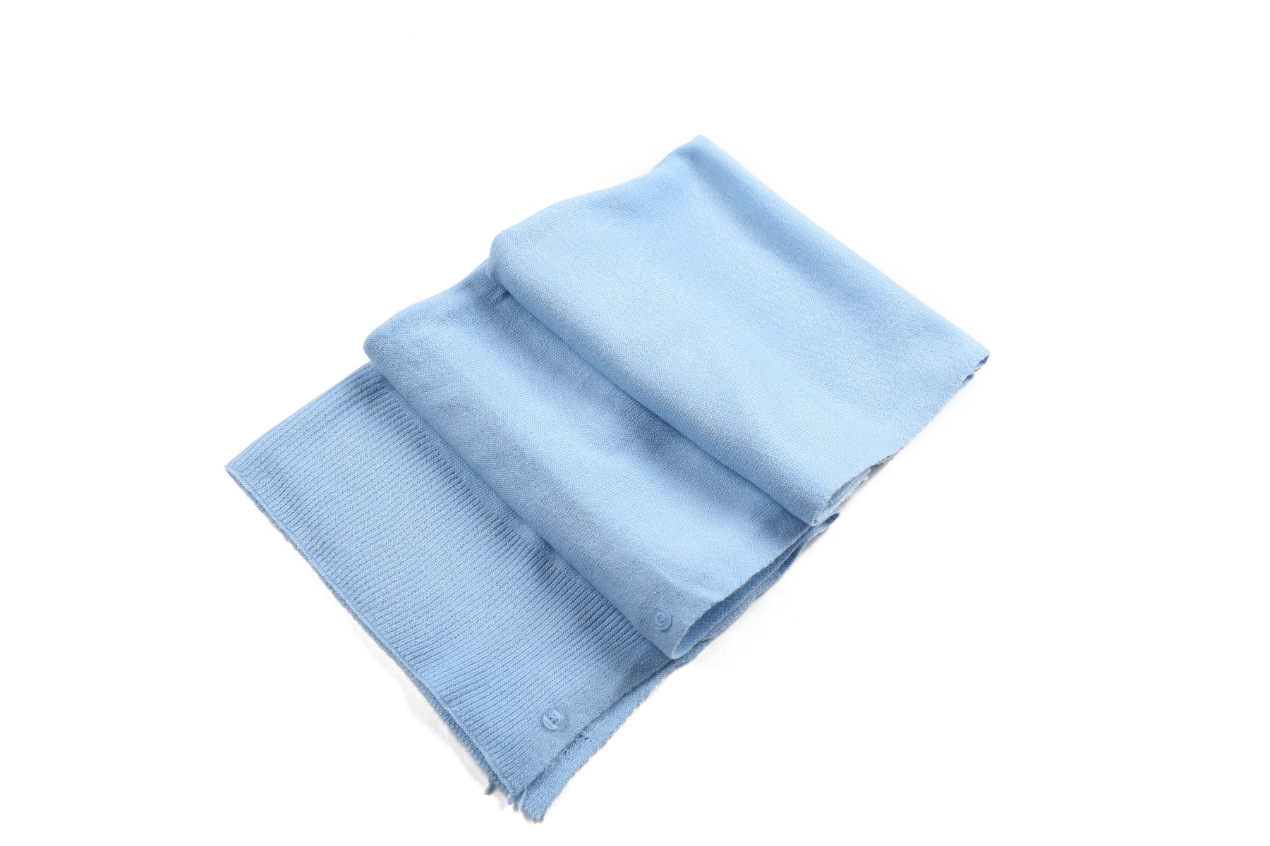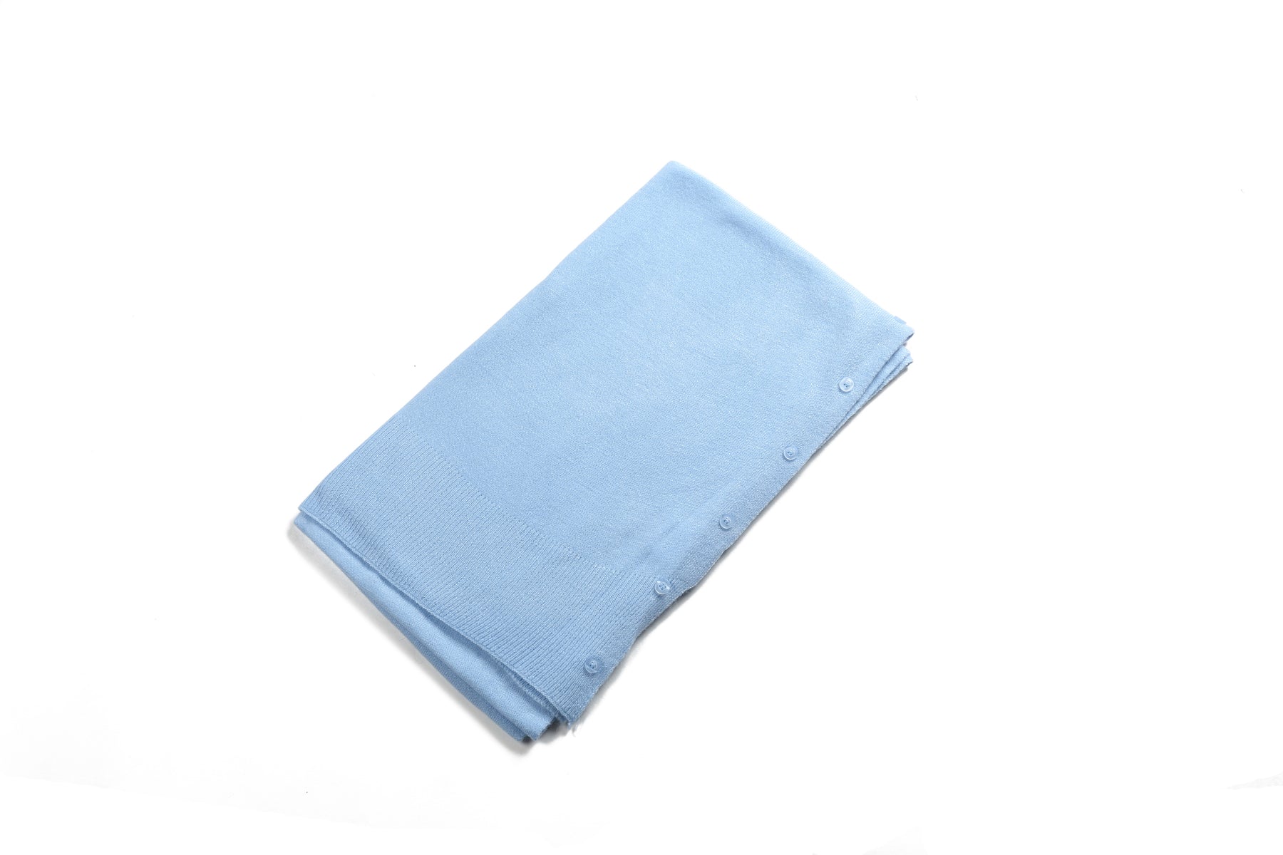 This light blue shawl is truly magic! With buttons on the sides of the shawl, you can wear it as a scarf, a shawl, poncho, and more! It keeps you warm whether it's in an office, classroom, or airplane, but is light enough to keep in your bag without weighing you down.