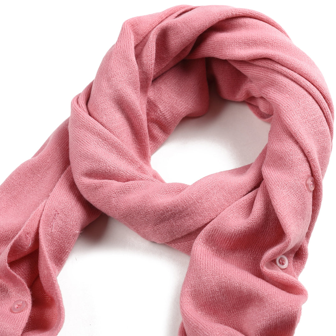 This pink shawl is truly magic! With buttons on the sides of the shawl, you can wear it as a scarf, a shawl, poncho, and more! It keeps you warm whether it's in an office, classroom, or airplane, but is light enough to keep in your bag without weighing you down.