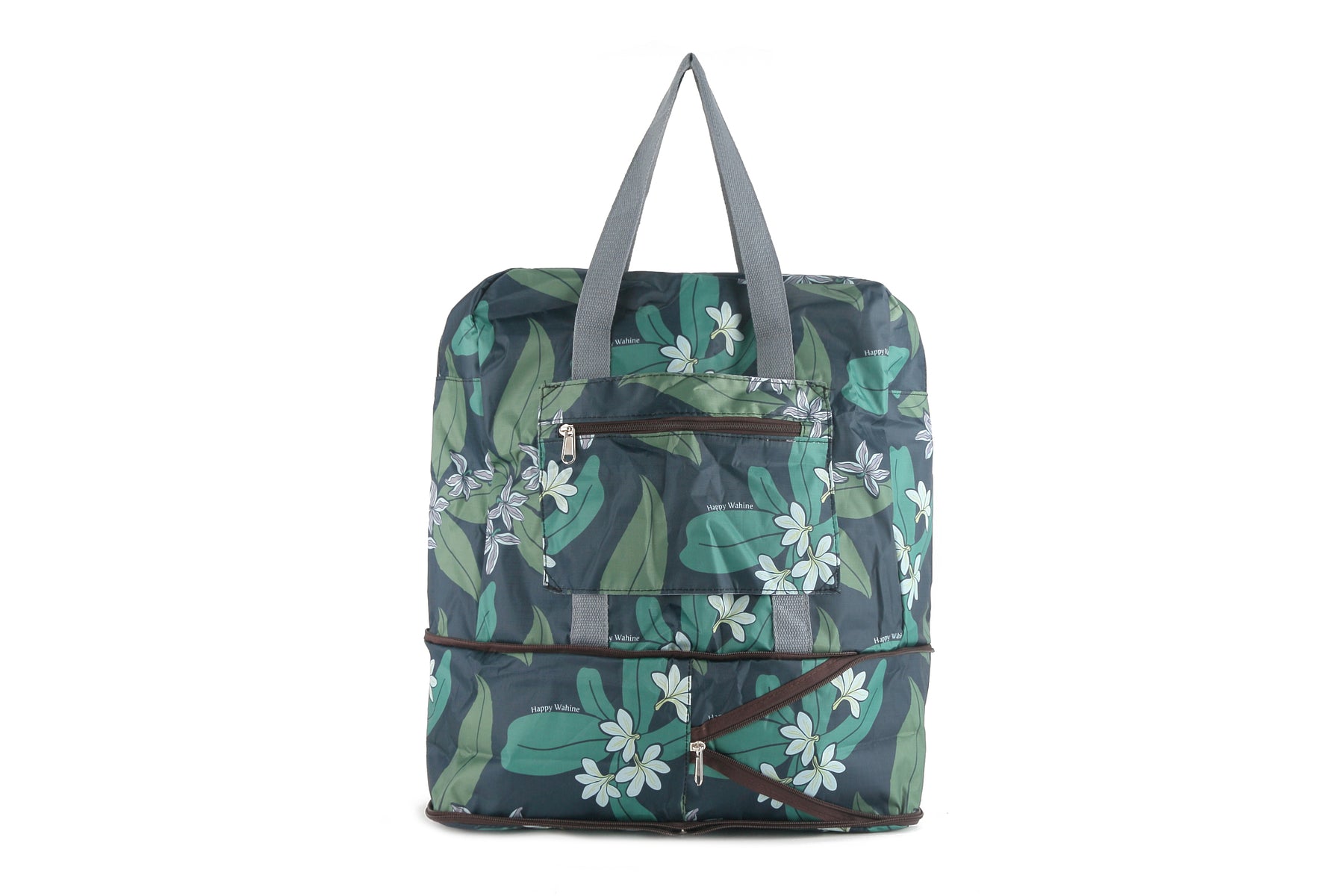 Travel in both style and practicality with the Sophie Foldable Duffle Bag! This bag is not only the largest possible size for a personal item for planes, but it is also foldable for easy packing (perfect to bring back souvenirs!) and made of an easily-washable nylon. The exclusive Naupaka Grey pattern is a perfect compliment to your outfit and/or luggage!
