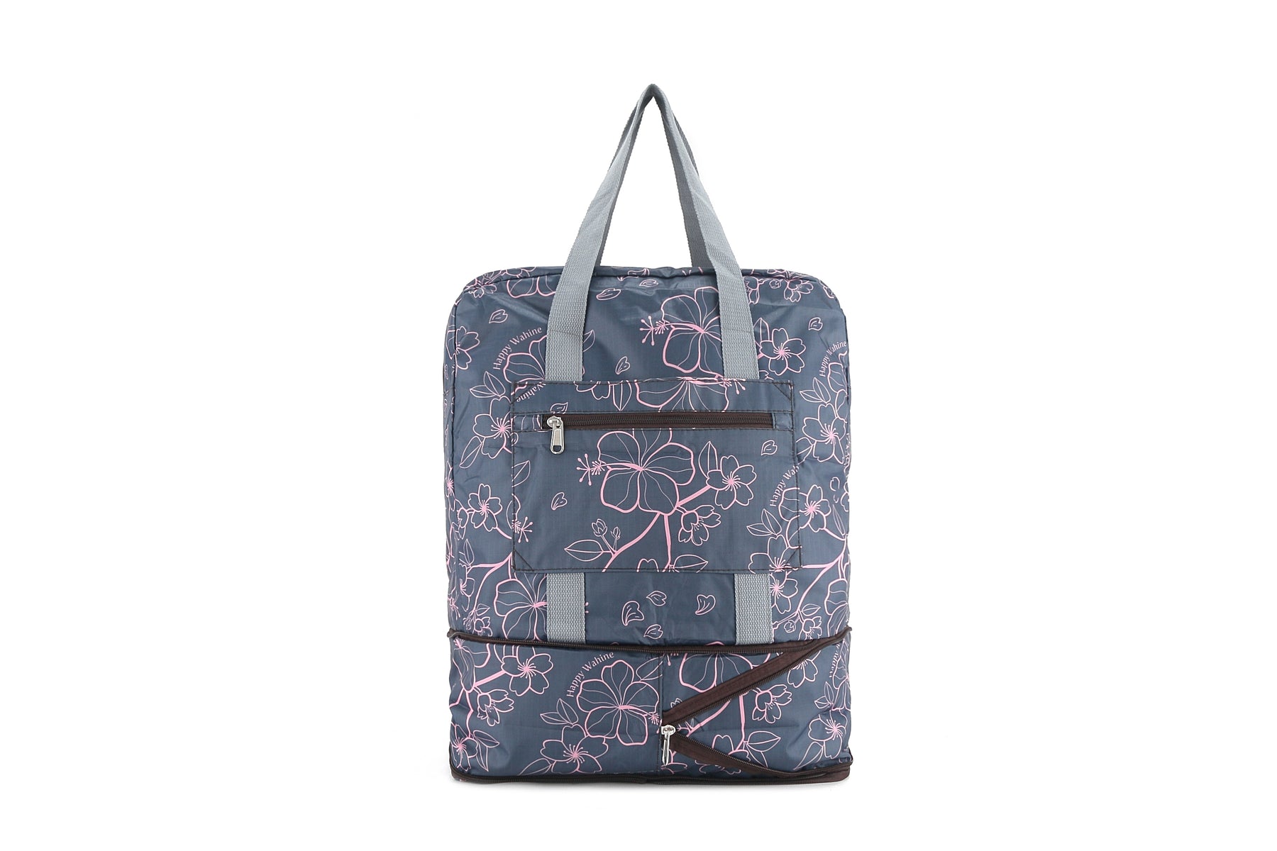 Travel in both style and practicality with the Sophie Foldable Duffle Bag! This bag is not only the largest possible size for a personal item for planes, but it is also foldable for easy packing (perfect to bring back souvenirs!) and made of an easily-washable nylon. The exclusive Sakura Grey pattern is a perfect compliment to your outfit and/or luggage!