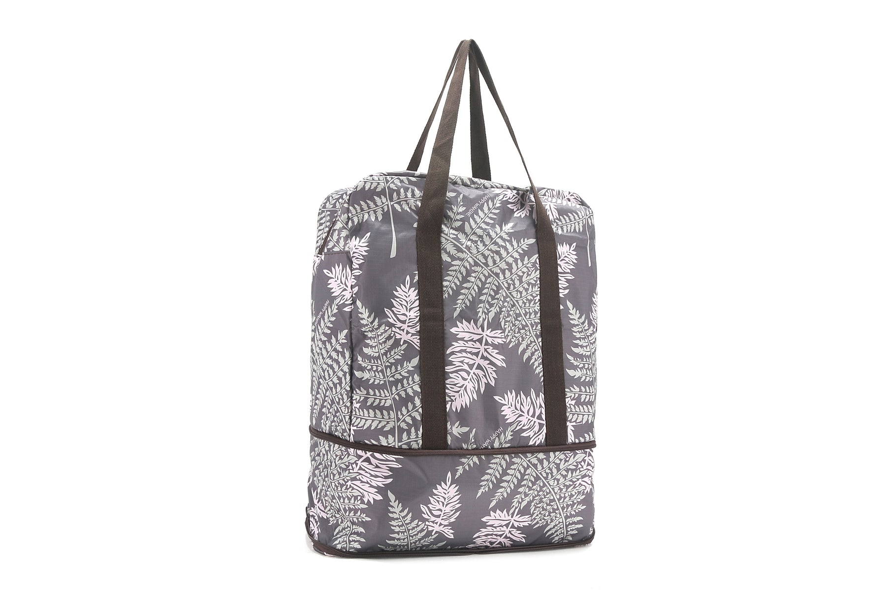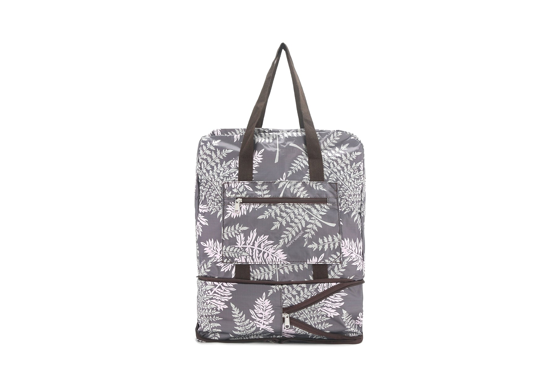 Travel in both style and practicality with the Sophie Foldable Duffle Bag! This bag is not only the largest possible size for a personal item for planes, but it is also foldable for easy packing (perfect to bring back souvenirs!) and made of an easily-washable nylon. The exclusive Fern Brown pattern is a perfect compliment to your outfit and/or luggage!