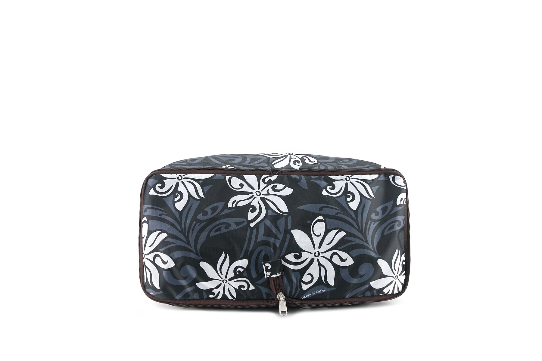 Travel in both style and practicality with the Sophie Foldable Duffle Bag! This bag is not only the largest possible size for a personal item for planes, but it is also foldable for easy packing (perfect to bring back souvenirs!) and made of an easily-washable nylon. The exclusive Tiare Infinity Black pattern is a perfect compliment to your outfit and/or luggage!
