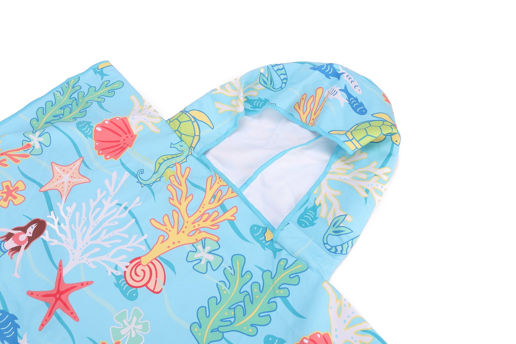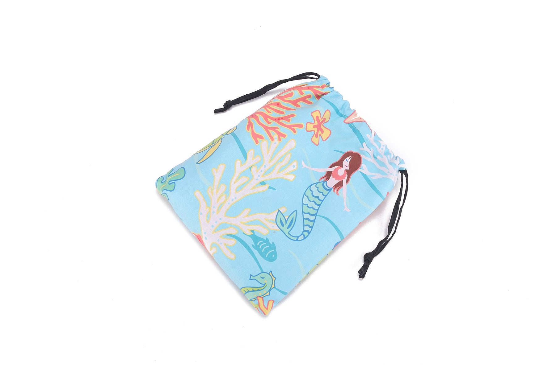 No beach day is complete without our Hooded Beach Towel Poncho Teenager in our exclusive Mermaid Blue print. Take on those waves and quickly dry yourself off with our super absorbent, sand-free, and quick drying hooded towel. Easily put on and take off the hooded towel with the snap closures for non-fussy littles. It is so comfy you will want to take a nap in it. Did we mention it comes with a matching drawstring pouch for easy storage and traveling?