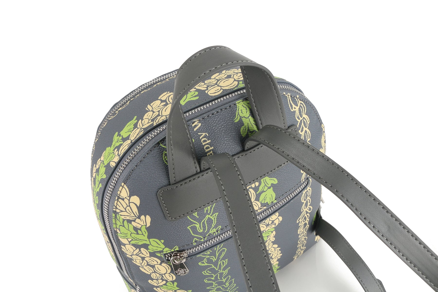 The Tiffany is your next go to backpack for work, school, and adventuring into the unknown. Walk the streets with our Tiffany backpack which is adorned in our exclusive Happy Wahine Pakalana Grey print. Designed with functionality in mind, this backpack has two zippered compartments to keep your electronics and personal belongings separate for easy access.