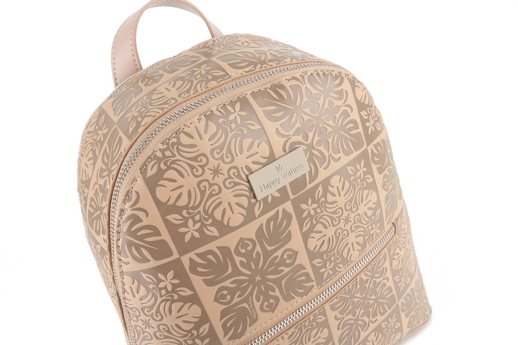 The Tiffany is your next go to backpack for work, school, and adventuring into the unknown. Walk the streets with our Tiffany backpack which is adorned in our exclusive Happy Wahine Quilt Embossed Beige print. Designed with functionality in mind, this backpack has two zippered compartments to keep your electronics and personal belongings separate for easy access.