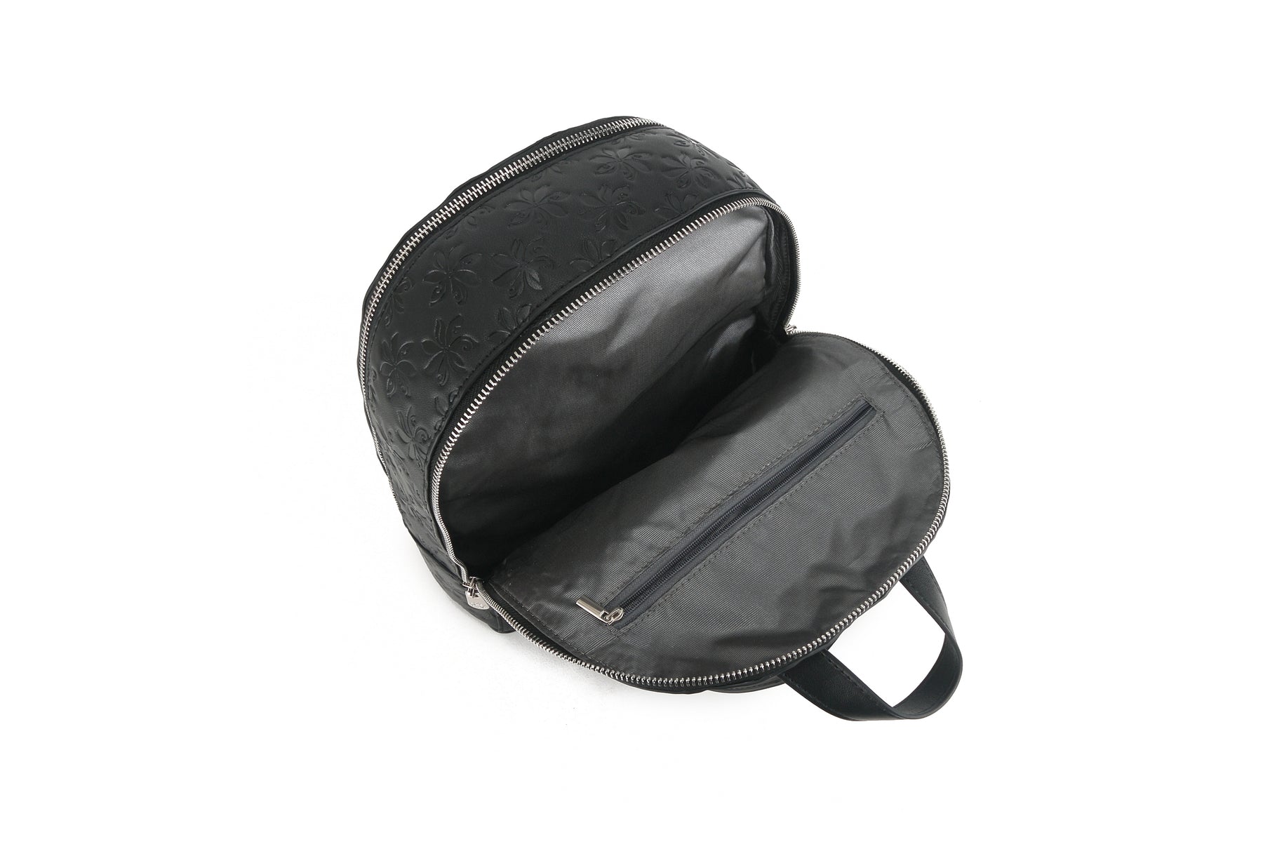The Tiffany is your next go to backpack for work, school, and adventuring into the unknown. Walk the streets with our Tiffany backpack which is adorned in our exclusive Happy Wahine Tiare Embossed Black print. Designed with functionality in mind, this backpack has two zippered compartments to keep your electronics and personal belongings separate for easy access.