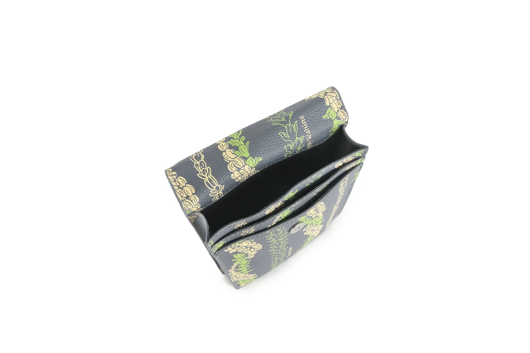 Saw this handbag on the website and ordered it. It has exceeded my expectations, perfect size for wallet, phone, glasses and more, but not too big. There's a beautiful, subtle Hawaiian pattern in the bag material. It can be worn cross-body or with strap removed, a handbag. As with all Happy Wahine products, I'm very pleased with this purchase.