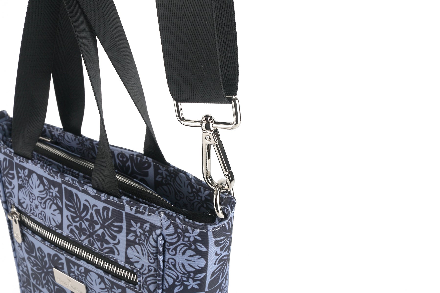 Saw this handbag on the website and ordered it. It has exceeded my expectations, perfect size for wallet, phone, glasses and more, but not too big. There's a beautiful, subtle Hawaiian pattern in the bag material. It can be worn cross-body or with strap removed, a handbag. As with all Happy Wahine products, I'm very pleased with this purchase.