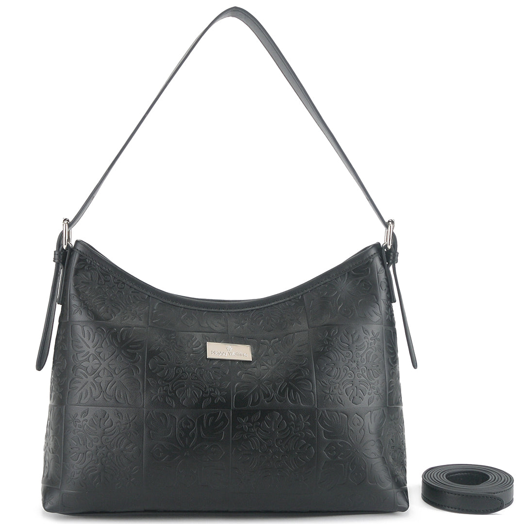 This style shoulder bag adorned in our exclusive Quilt Black Embossed print creates an effortlessly cool vibe, perfect for those who appreciate a laid-back yet sophisticated look. With its functional elegance, this adjustable crossbody bag also includes a strap that allows you to change up the style and attach it with ease. Created with function in mind, its beautiful rounded hobo style is ready to carry your day to day items, all in one place. From your must-have makeup to that novel you can't put down, this bag has you covered. The carefully designed pockets keep your belongings organized, ensuring you can effortlessly transition from day to night without missing a beat.