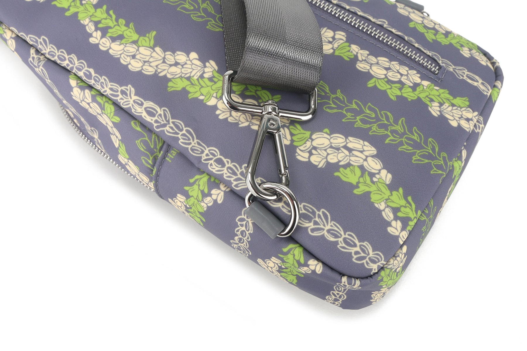 Always on the go? We have the perfect sling bag for you! Our sling bag with the Pakalana Grey is comfortable, water resistant, and ready to leave when you are. There are 3 zippered compartments on the outside, the larger one has 2 inside pockets to keep everything organized and secure. It also has an adjustable shoulder strap with easy access to alternate sides.