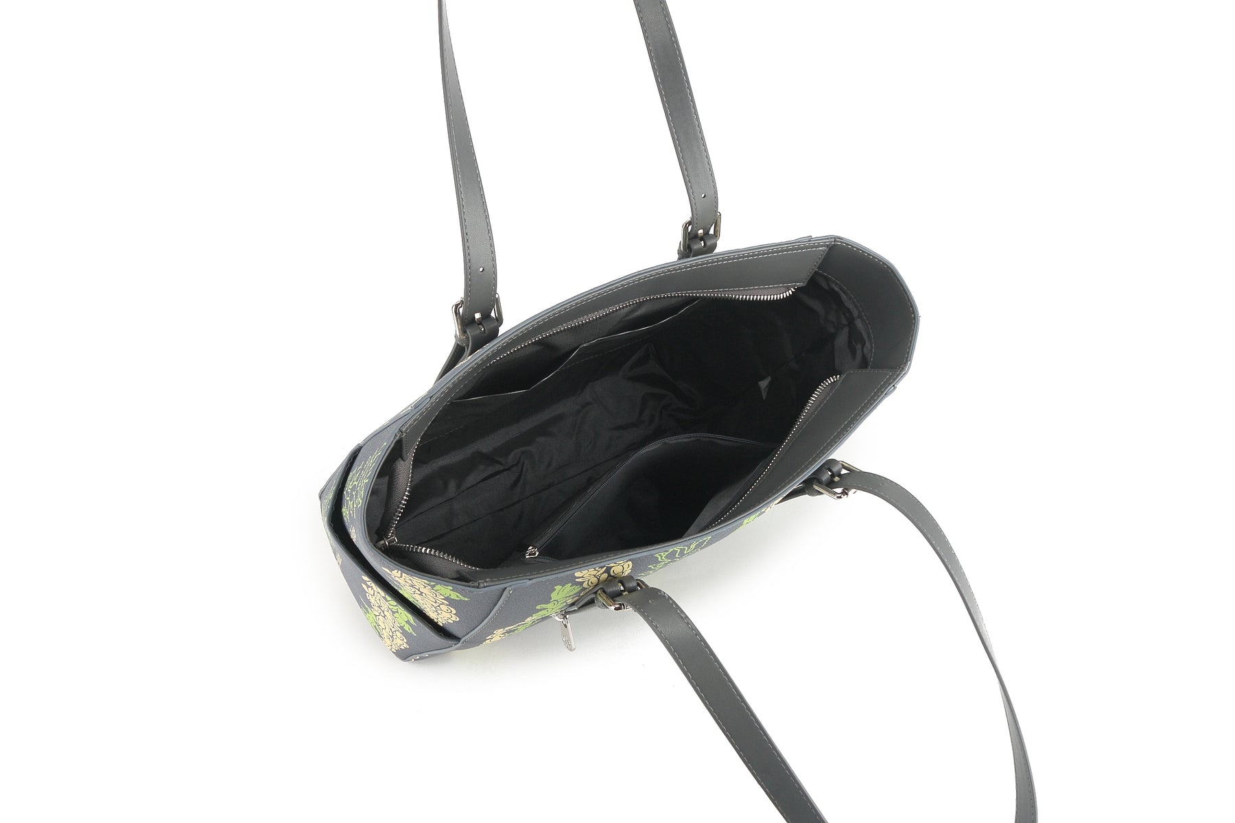 Our Elizabeth is the perfect tote for you if you’re looking for our beautiful prints in a purse. This tote bag features pockets to keep your smaller items organized while still offering space in the center for all of your larger belongings. This sophisticated Hawaii inspired Pakalana Grey tote gives you the feeling of security with the top-zip design created to make sure your essentials stay put.