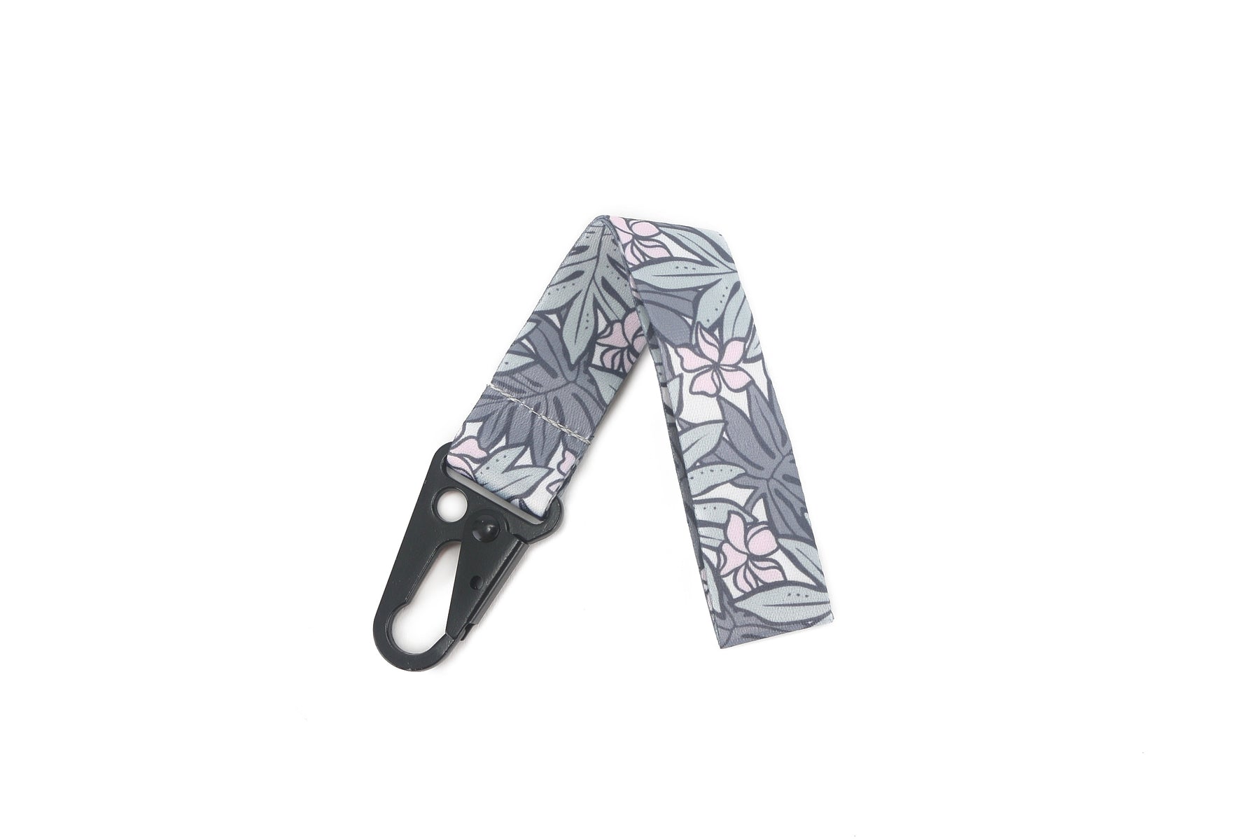 Keep your belongings on hand with our functional and sturdy wristlet lanyard! Featuring a easy-open clip, this lanyard comes in our exclusive Lauae print in grey.