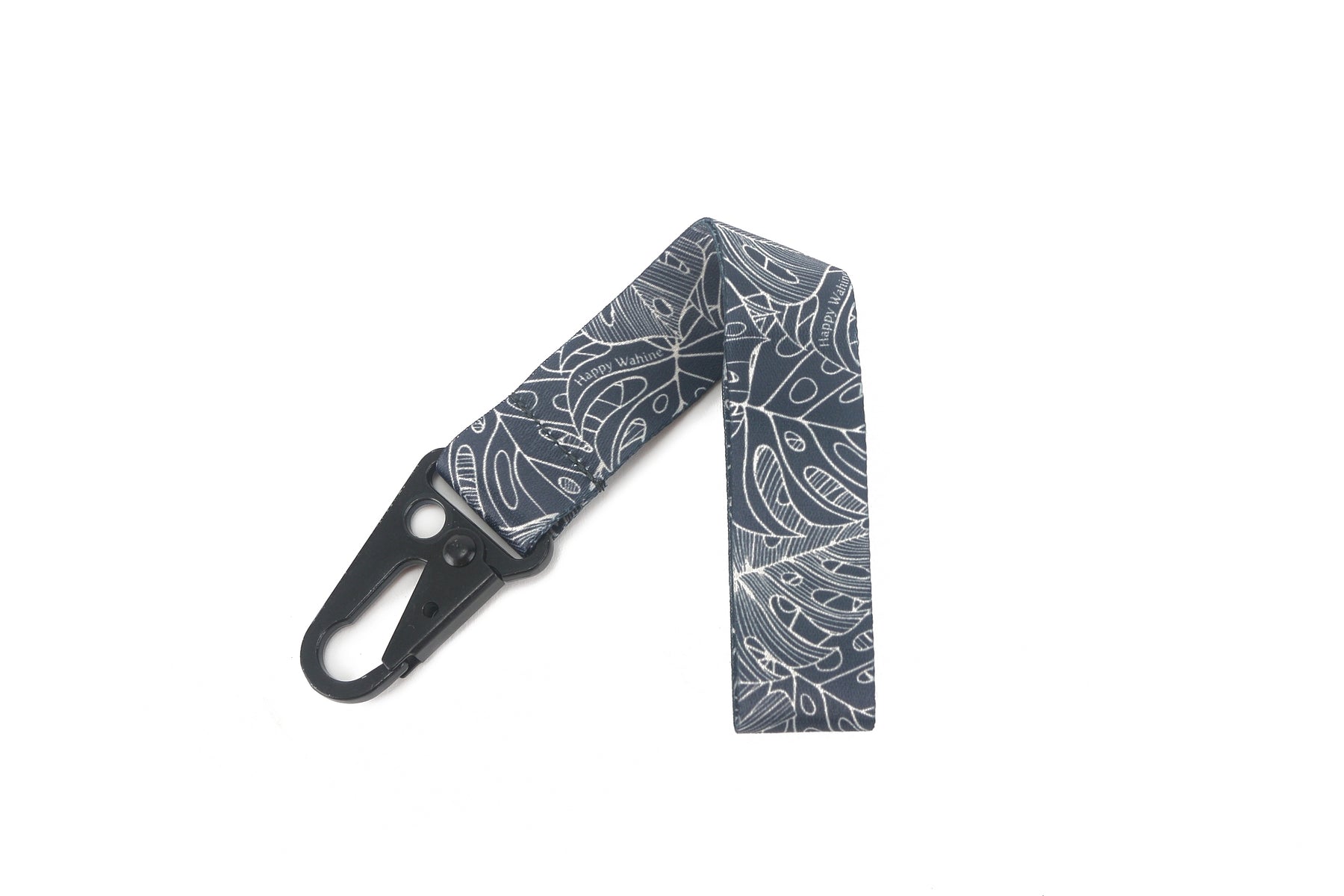 Keep your belongings on hand with our functional and sturdy wristlet lanyard! Featuring a easy-open clip, this lanyard comes in our exclusive Monstera Line print in blue.