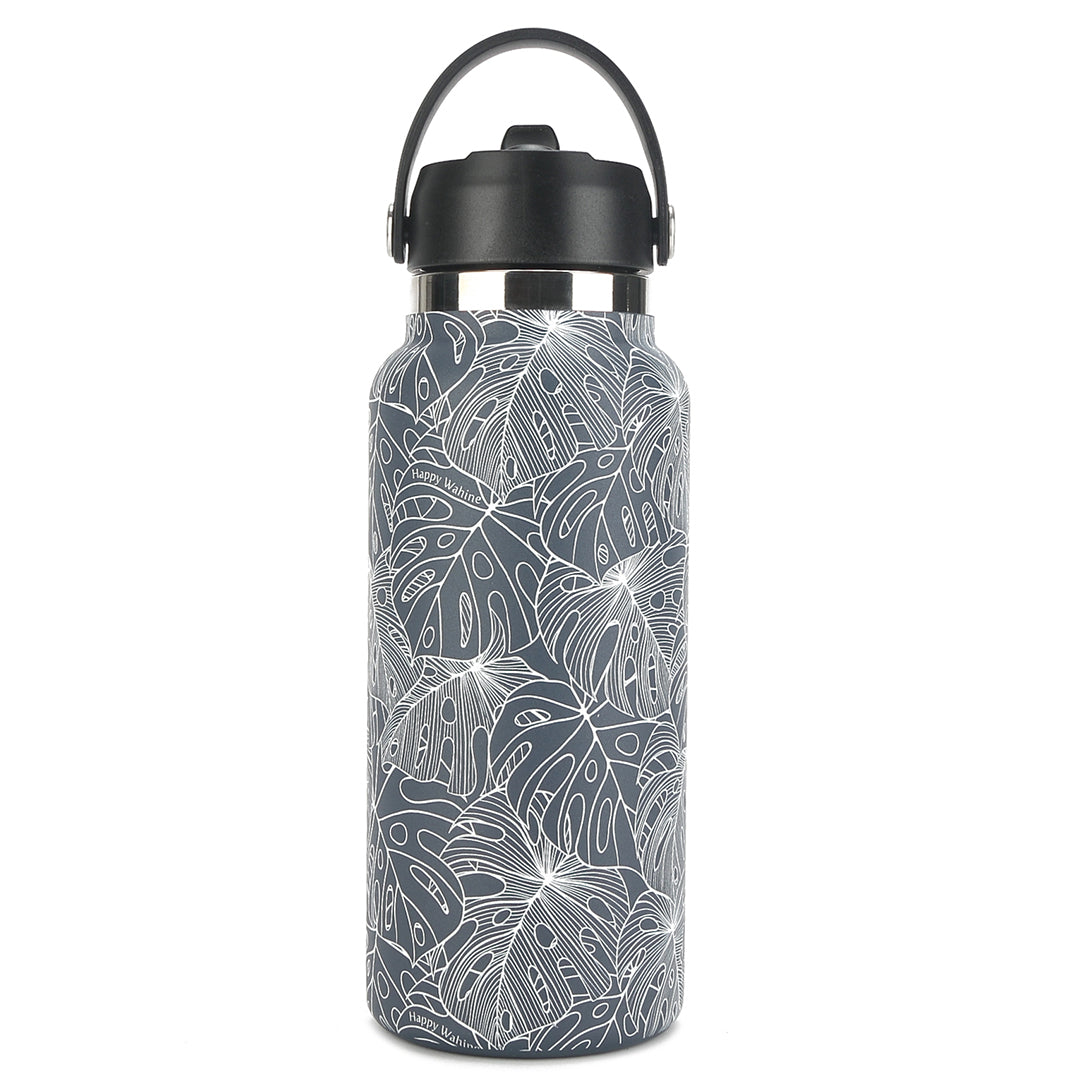 Insulated Water Bottle 32oz Monstera Lines Grey