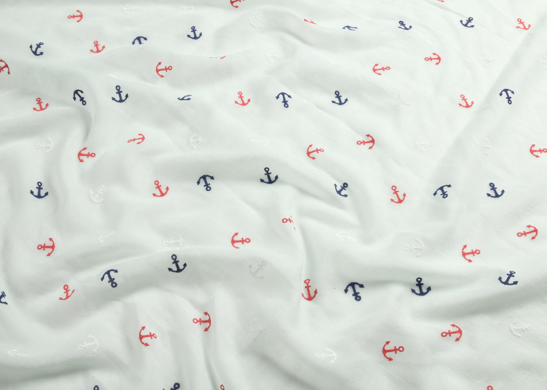 This Danielle scarf has a multicolor anchor pattern on a mint background! Use it as a wrap at the beach, layered around your neck for a cold day, or simply around your shoulders as a cover.