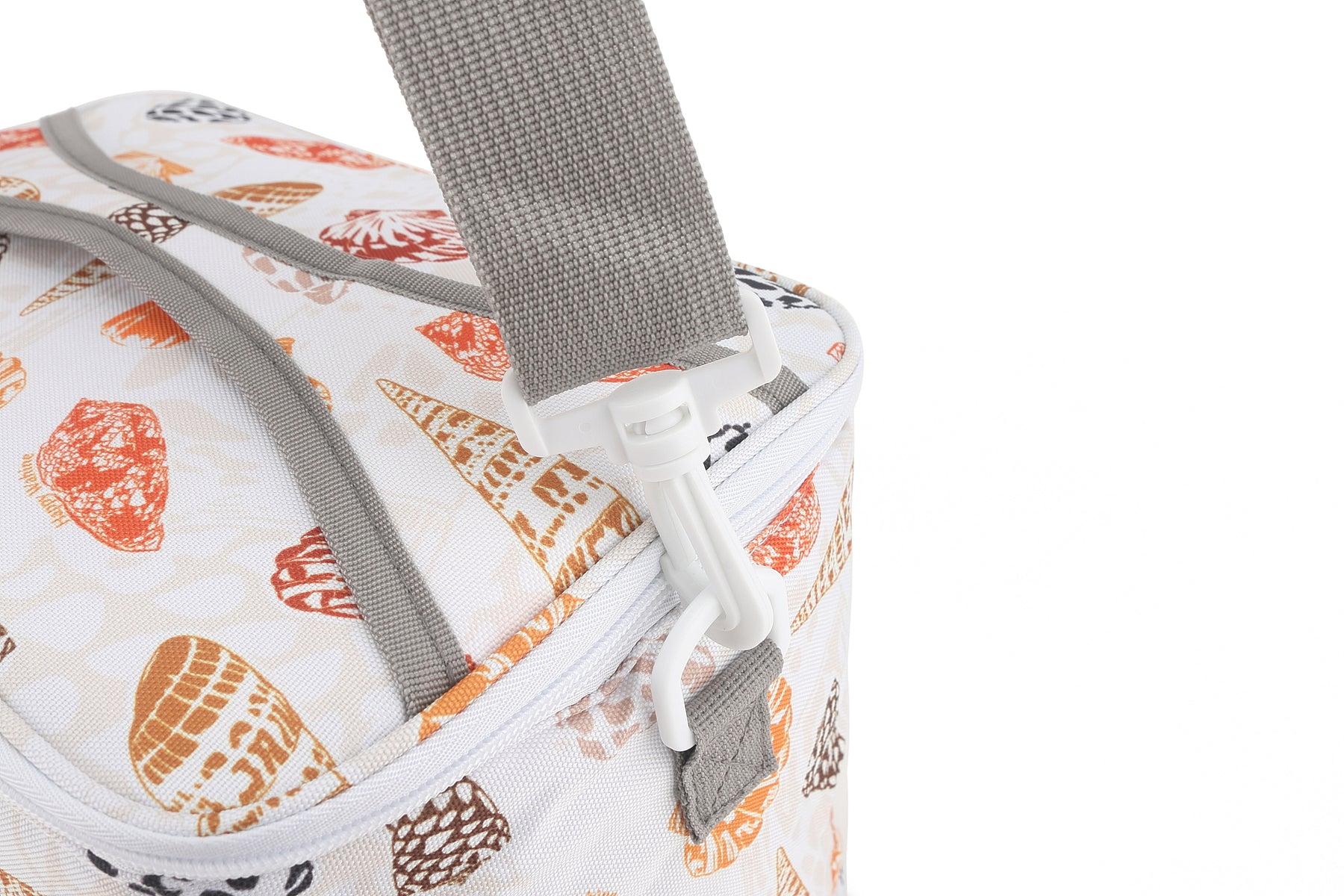 This Medium Cooler Tote is your perfect companion for outings! Featuring a convenient single hand strap and a removable, adjustable shoulder strap, it offers versatile carrying options. The 2-way zipper provides easy access to your snacks and drinks, while the PEVA waterproof lining ensures everything stays cool and protected. With its exclusive print Cone Shell White, this tote combines style and functionality, making it ideal for picnics, beach trips, or everyday adventures!