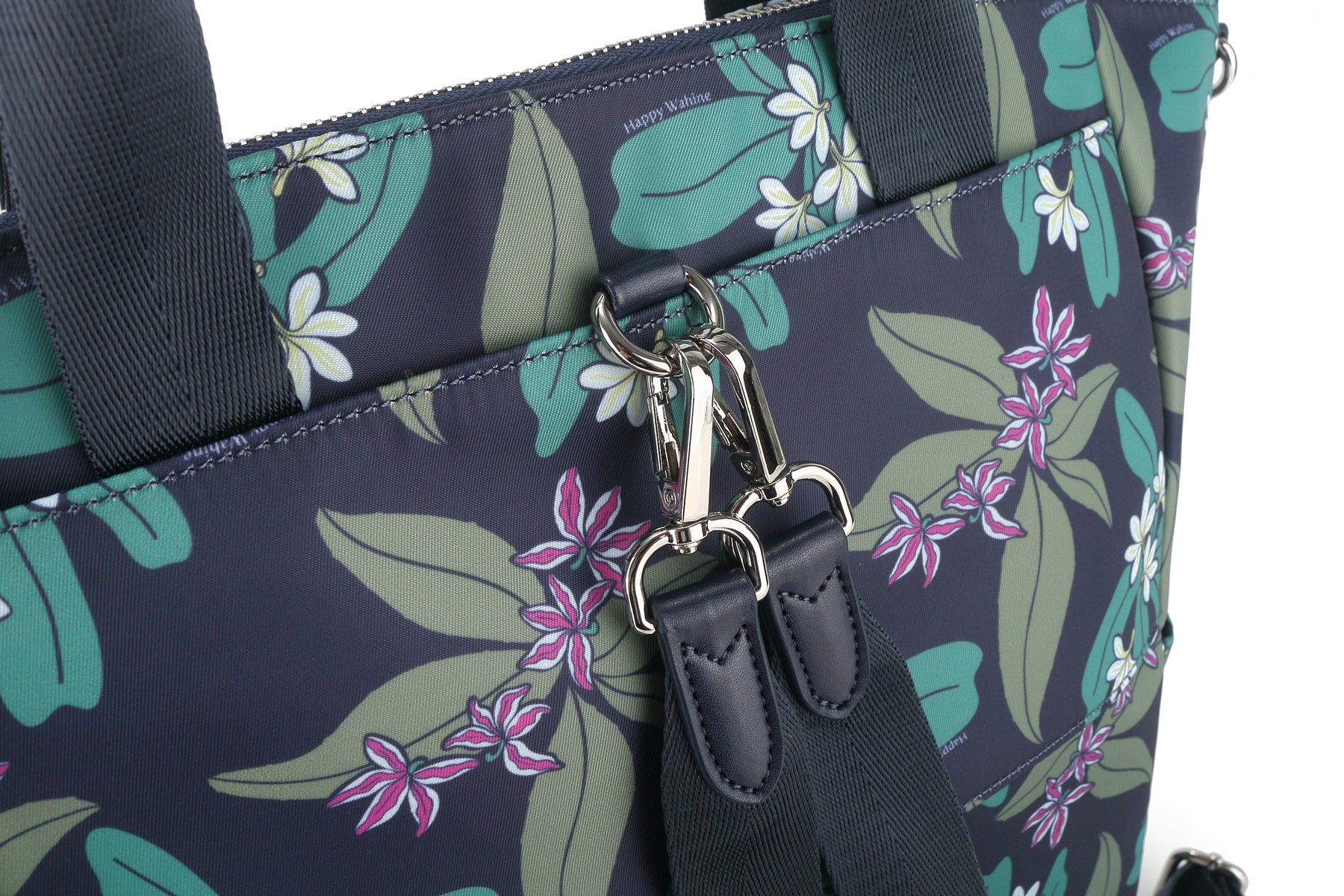 This versatile book bag is designed for everyday ease and multiple ways to wear. The detachable, adjustable straps allow you to switch effortlessly between a shoulder bag and a backpack, and it also features sturdy top handles when you want a quick grab-and-go option. Inside, multiple pockets provide organized space for your essentials. Adorned in our Naupaka Navy print, it’s a functional, stylish companion for work, school, or travel.