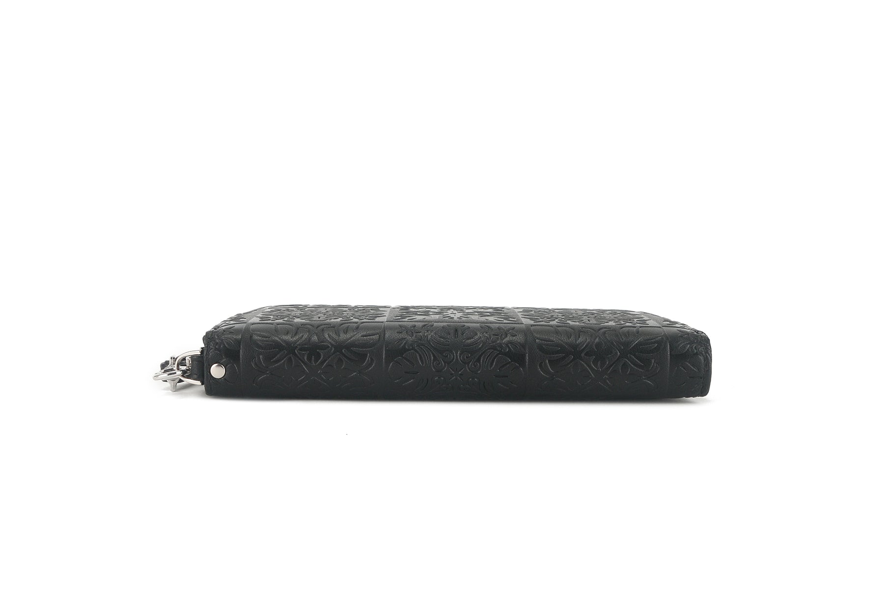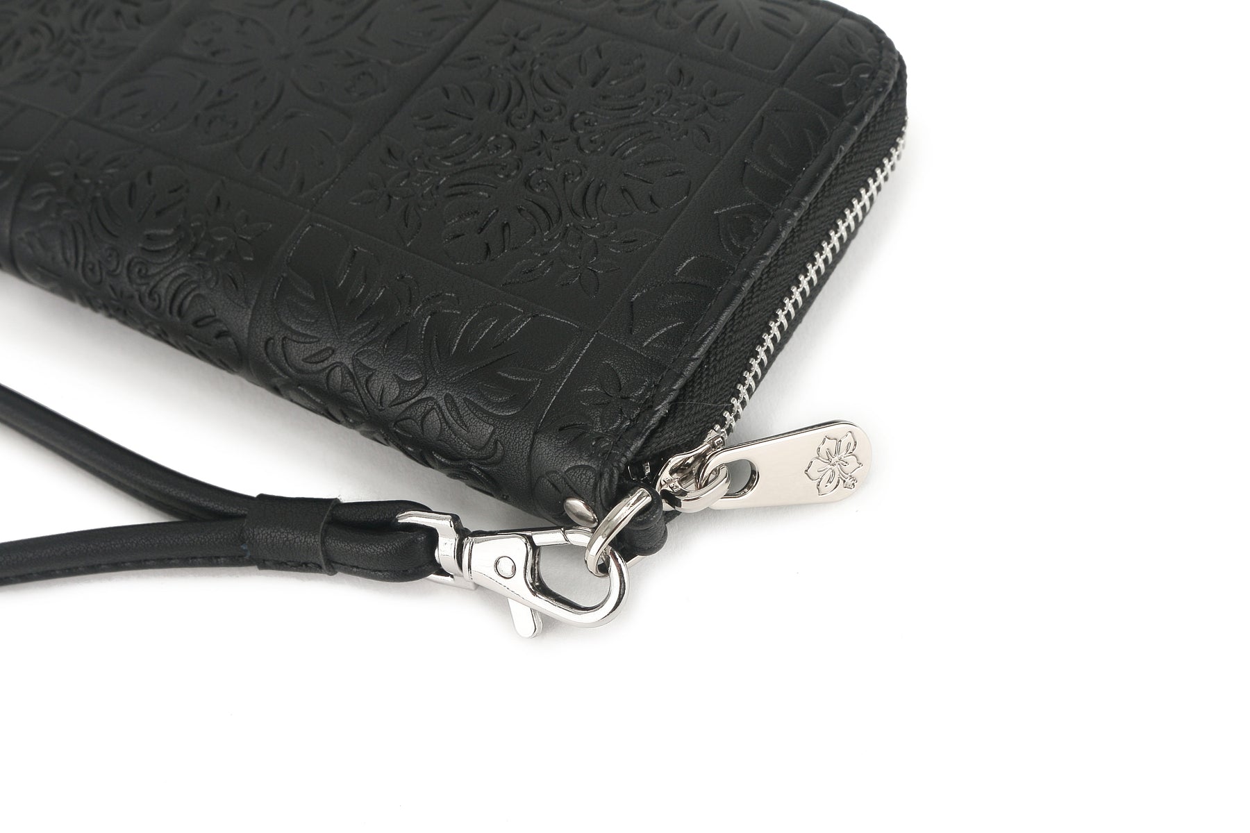 Hold all your essentials in the palm of your hand with the Kaylee Wallet! The wallet has a detachable wristlet strap, 8 credit card slots, 2 side pockets for paper money, 1 zippered coin divider, and 3 separated inside compartments. This wallet is also large enough to hold a passport and phone, and it is RFID protected to keep your cards safe! Our exclusive Quilt Embossed print in black is the perfect compliment to your purse or outfit!