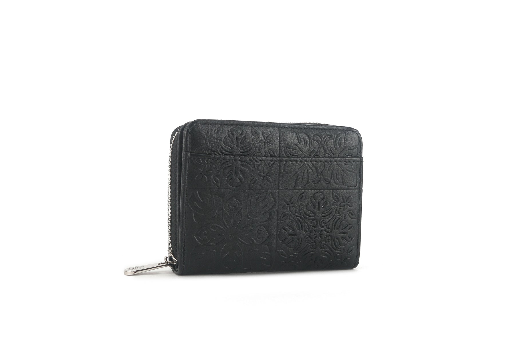 The Quilt Embossed Black Meily wallet is the perfect small companion that fits into your small crossbody handbag and has all your IDs, cards, and cash handy for you. It has space for 6 cards and can handle your cash as well. The closed zipper compartment also offers plenty of space for additional cards, receipts, or other items. Your ID can fit perfectly into the flap which features a window for your ID.