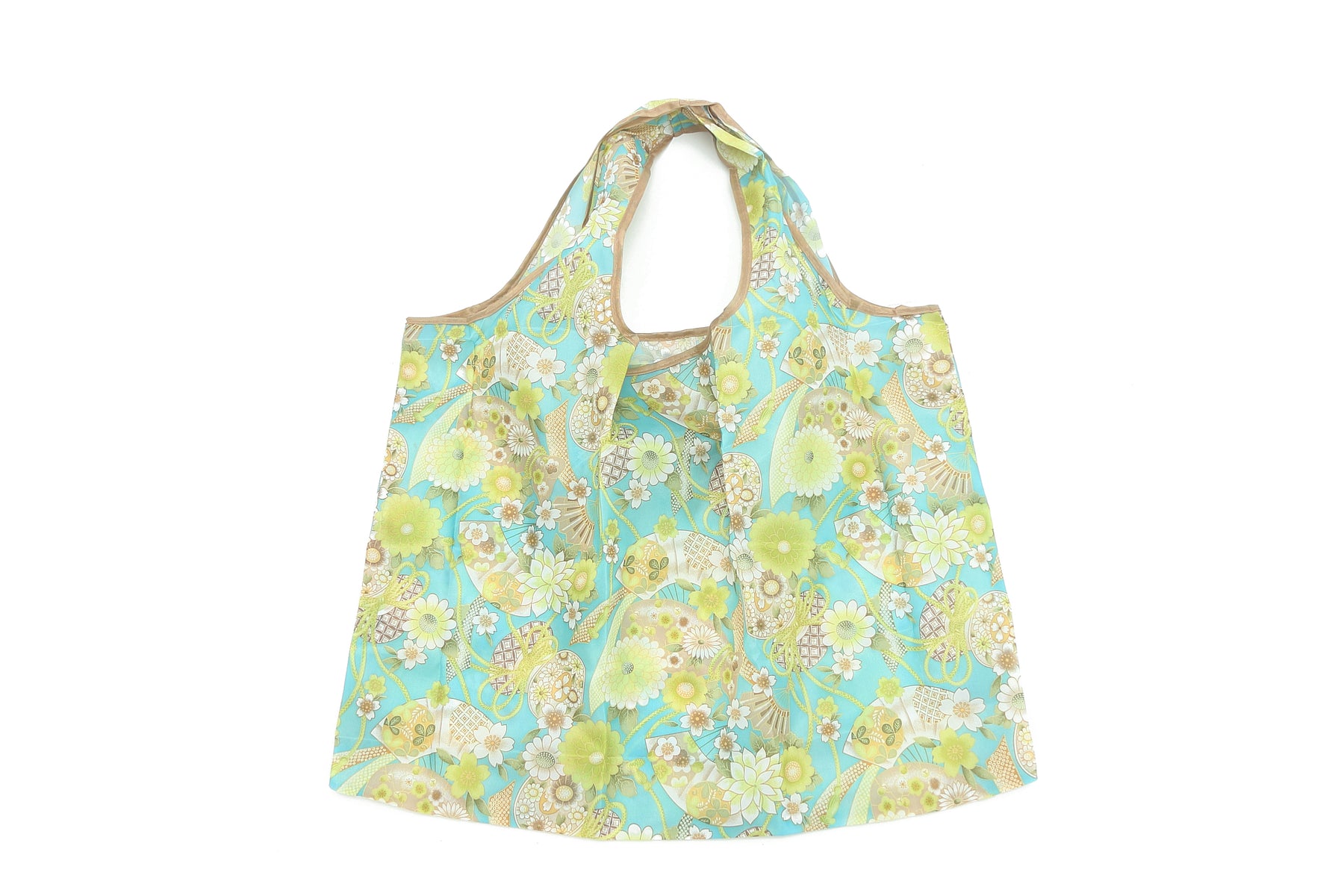 Go green with this lightweight and foldable tote bag! The Jackie tote comes with its own attached pouch to store it for easy packing in a purse or pocket. Our asian pattern in teal makes the perfect addition to your outfit while you shop!