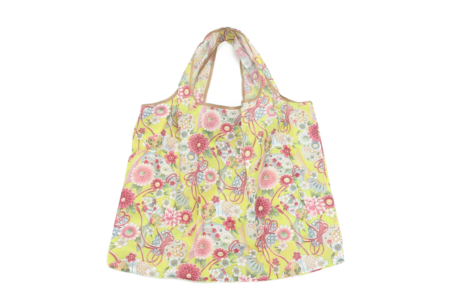 Go green with this lightweight and foldable tote bag! The Jackie tote comes with its own attached pouch to store it for easy packing in a purse or pocket. Our asian pattern in yellow makes the perfect addition to your outfit while you shop!