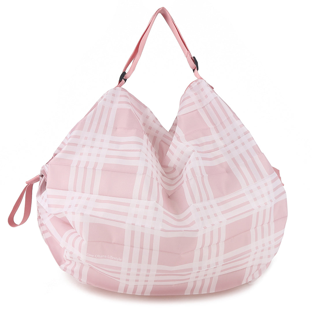 Discover the convenience of the Foldable Bag Jazmine Palaka Pink! Effortlessly shop with style, and when you're done, simply pull the edges and roll it up for quick and compact storage. It’s that easy!