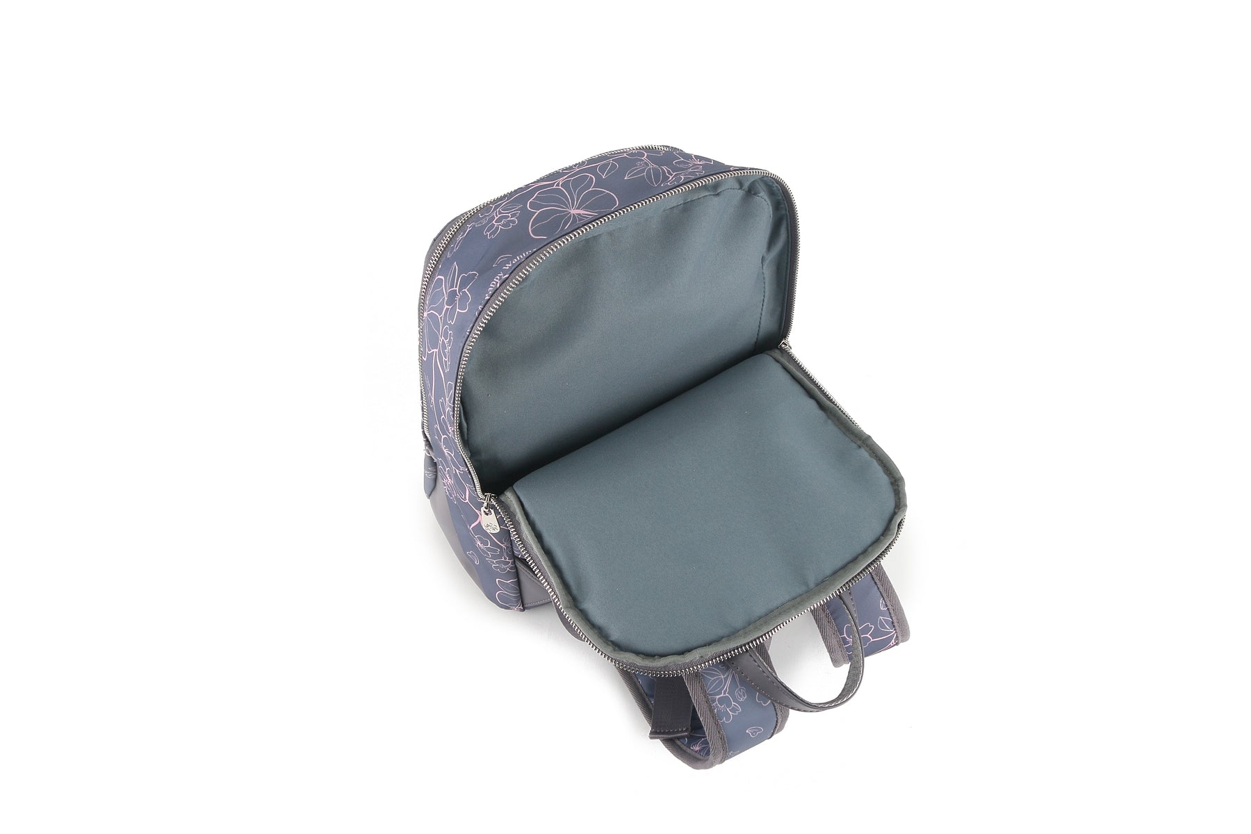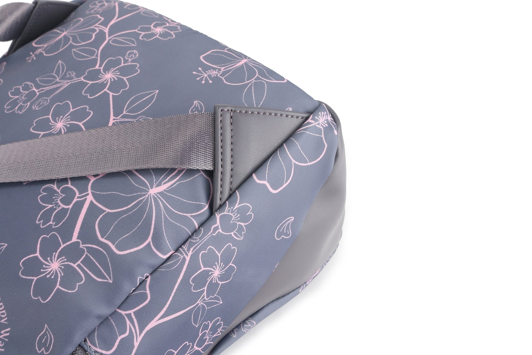 For those who like more security in the shape of a backpack. Our Keʻolu backpack in Sakura Grey print will be your new best friend. It showcases two side pockets, one front and back zippered security pockets, and two open pockets with one zippered pocket on the inside.