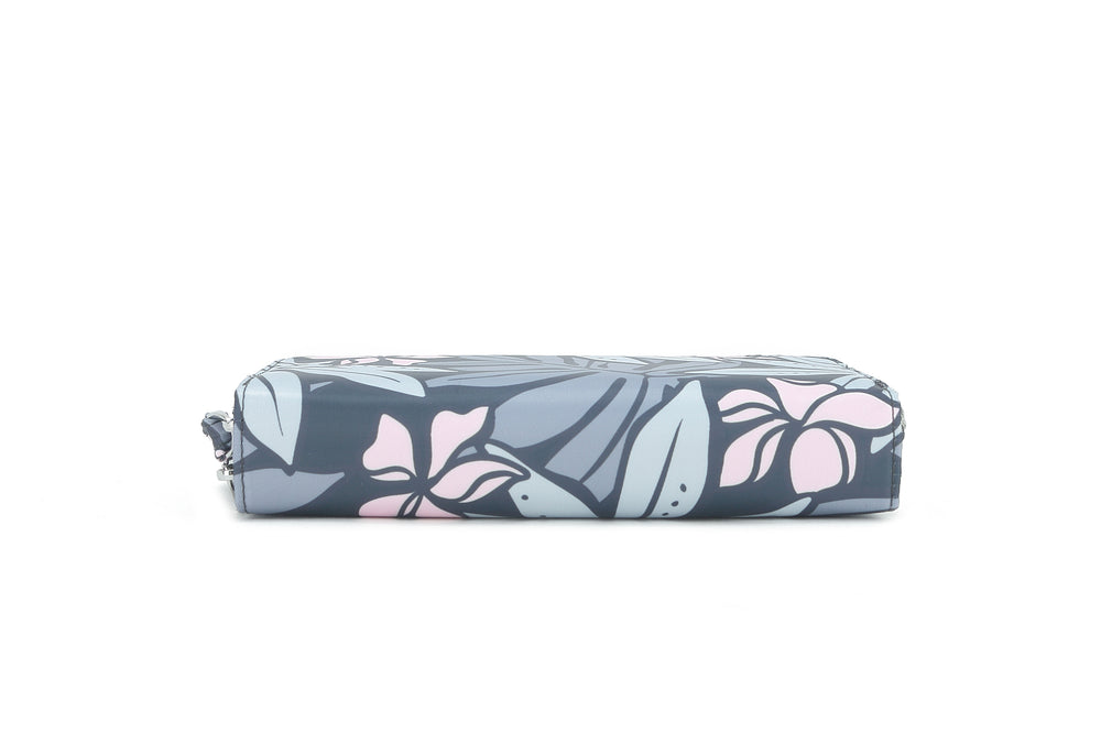 The Allison wallet offers a compact way to carry your essentials! This wallet will protect your credit and debit cards with RFID protection. The wallet has 14 credit card slots, 1 zipped coin compartment, and 3 separated inside pockets large enough to fit all types of currency. We also have a zippered front pocket to hold your phone or similar items and it features a stylish wristlet strap as well! The exclusive Laua'e pattern in grey makes for the perfect addition to your purse or outfit!