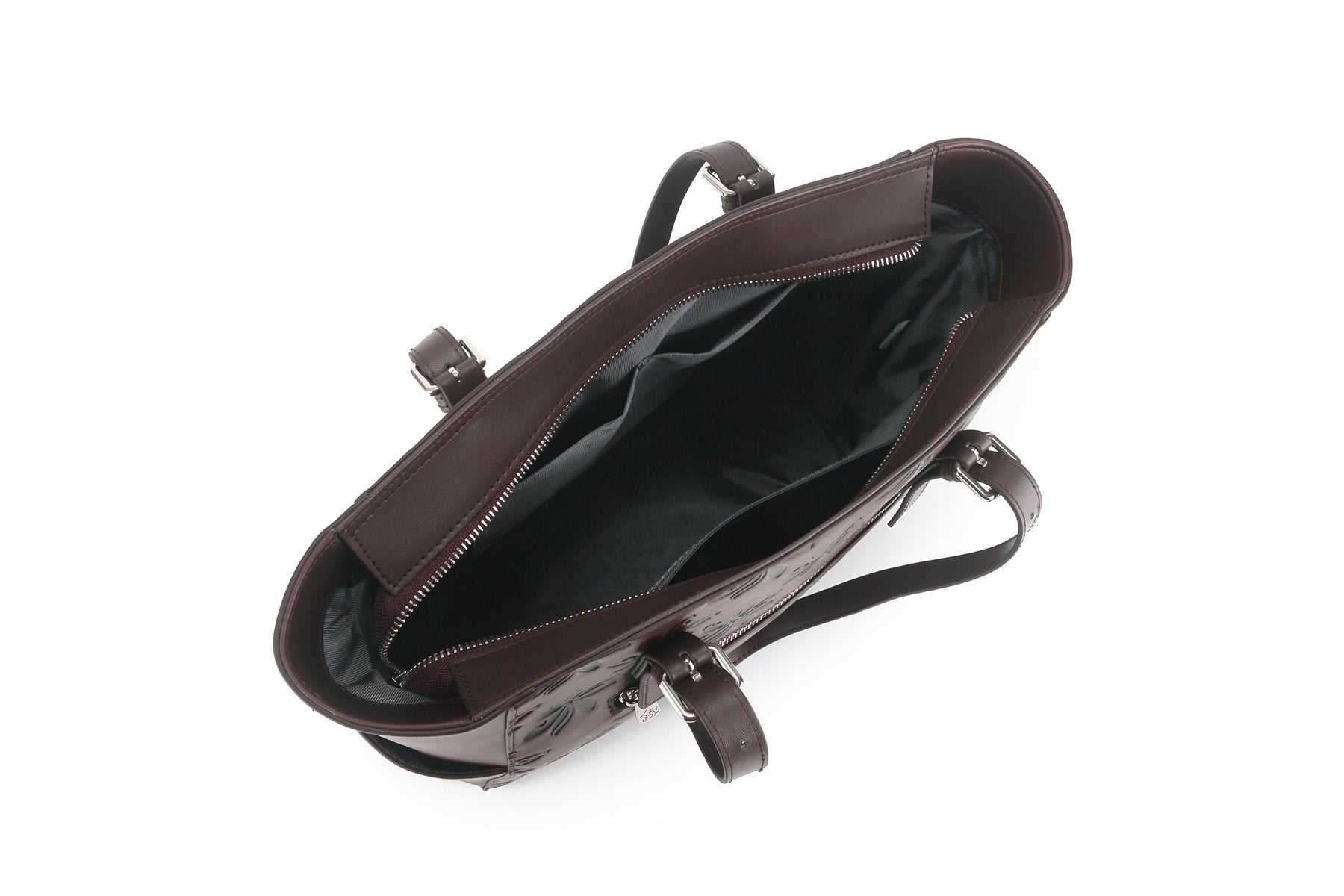 Our Elizabeth is the perfect tote for you if you’re looking for our beautiful prints in a purse. This tote bag features pockets to keep your smaller items organized while still offering space in the center for all of your larger belongings. This sophisticated Hawaii inspired Tiare Brown Embossed gives you the feeling of security with the top-zip design created to make sure your essentials stay put.
