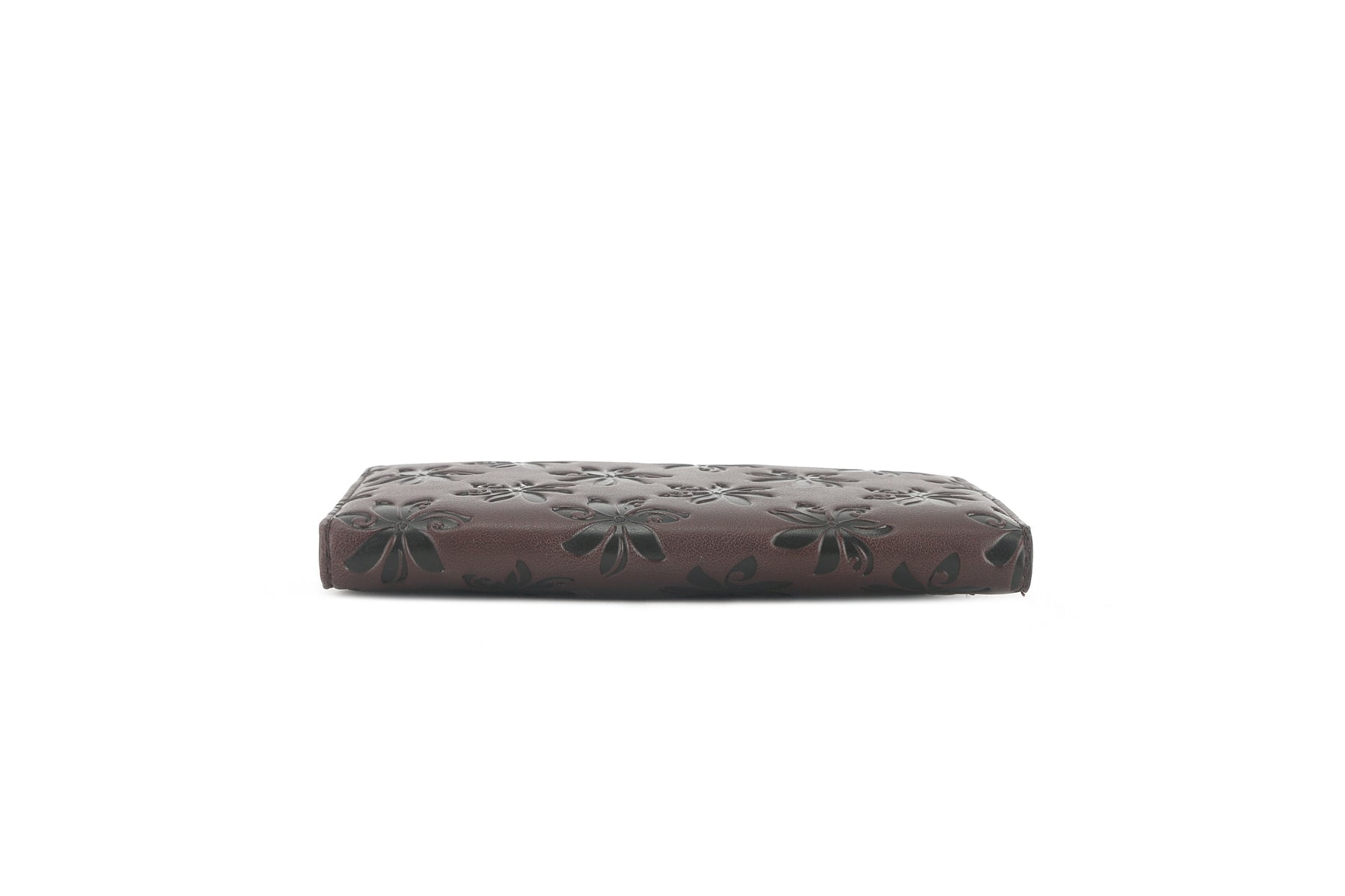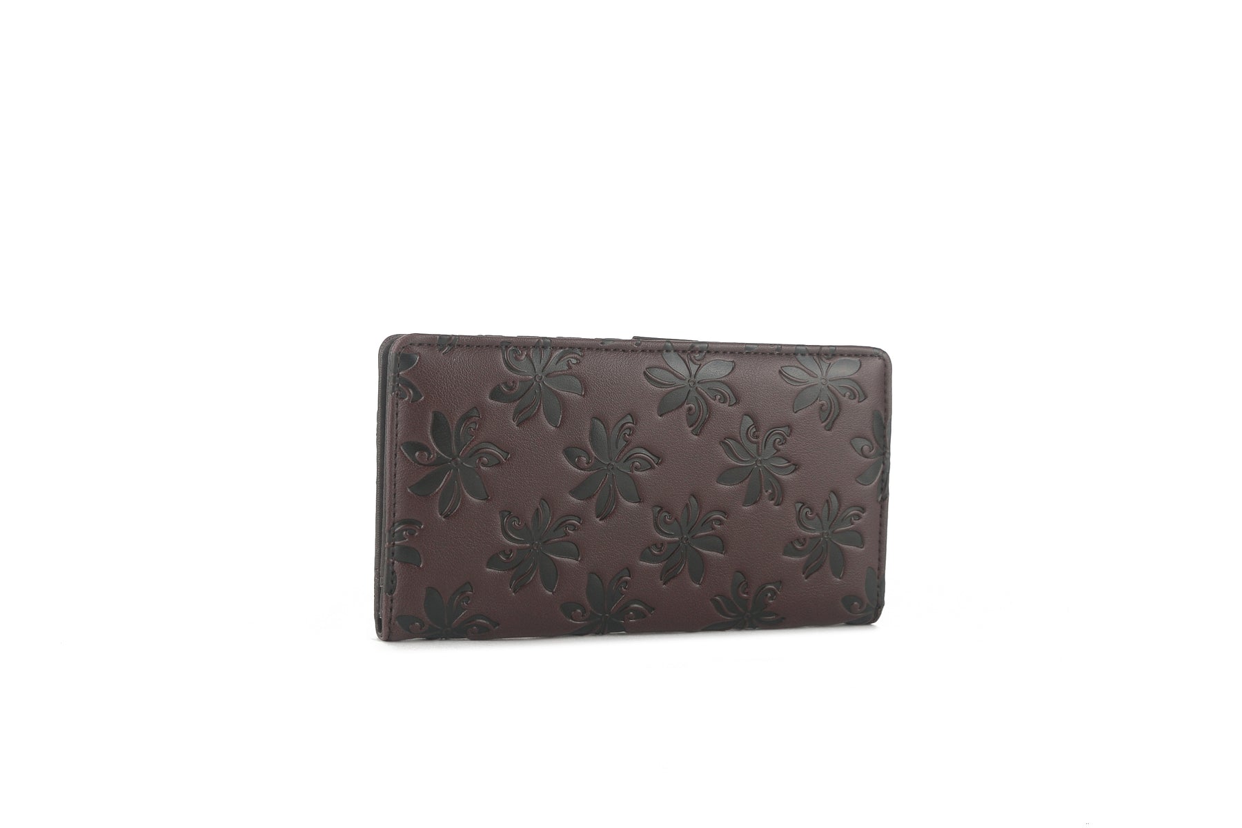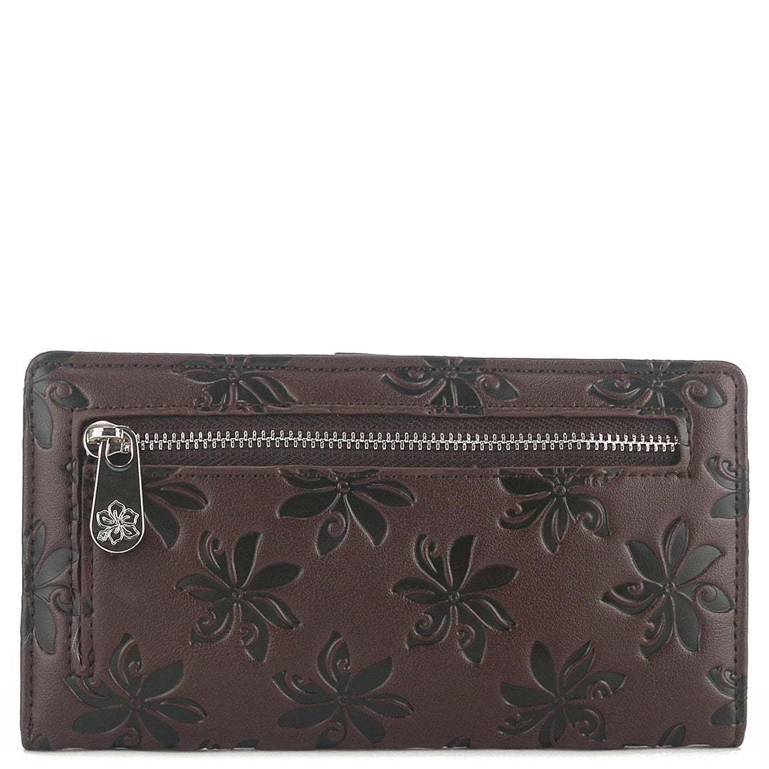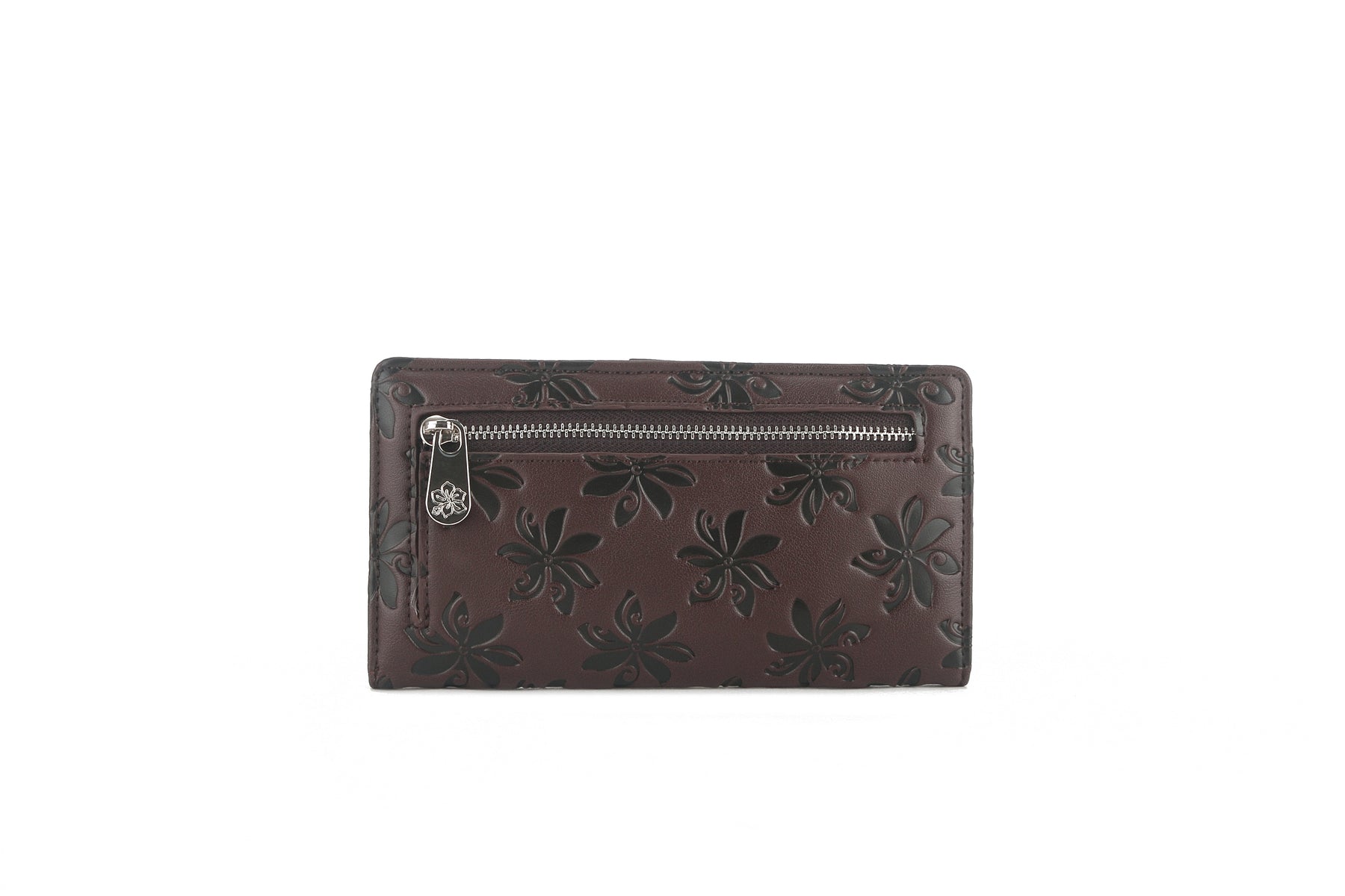 Keep your cards and essentials in a sleek wallet that holds it all! Our Teyla wallet has a whopping 13 credit card slots, plus 1 zippered coin compartment, and 4 separate inside pockets. This slim-size wallet features RFID protection through the use of a built-in electromagnetic shielding composite. The exclusive Tiare Embossed pattern in brown is sure to receive compliments!