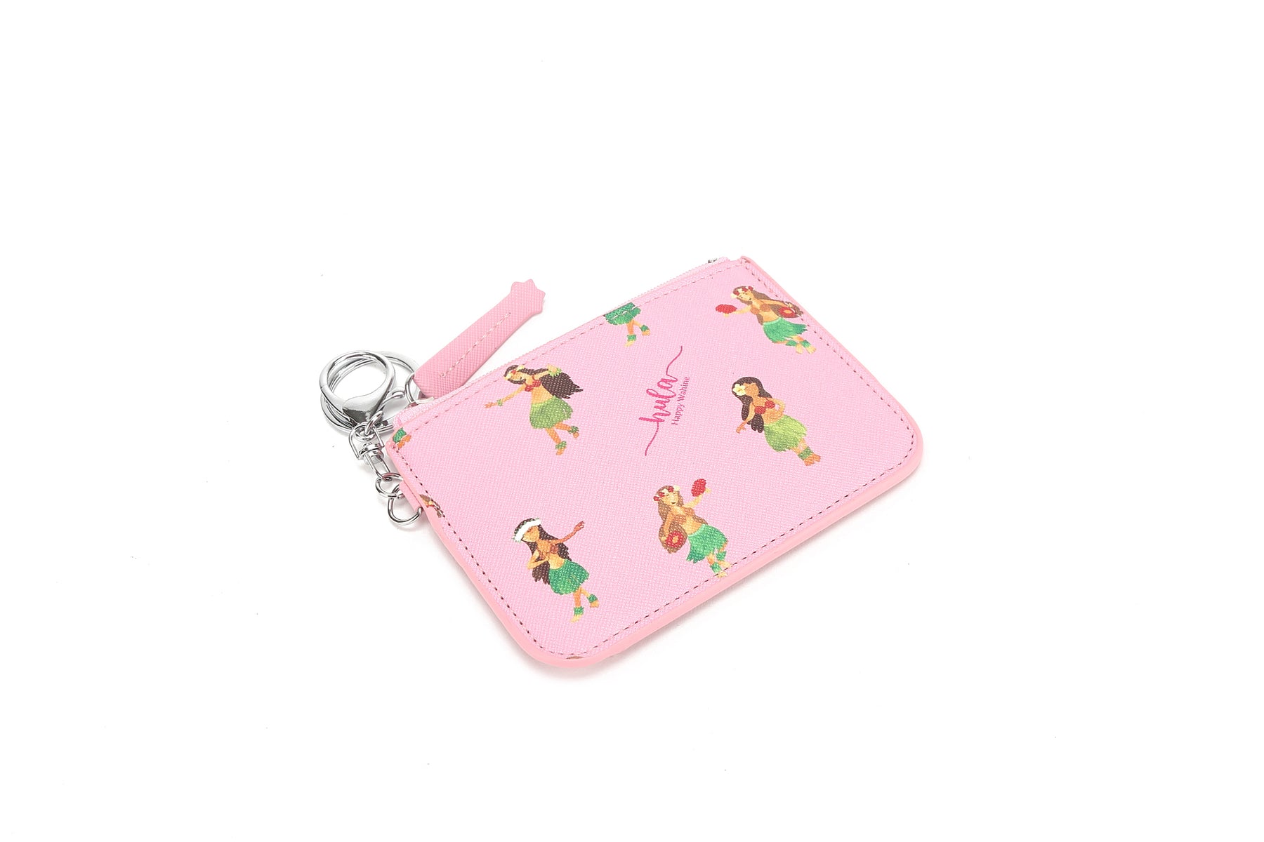 Lightweight, compact, and ready to go whenever you are! The May Hula Girl Pink card case is a great case to store all your small necessities. The zipper compartment allows you to keep cash, coins, or keys safe and secured. The transparent back pocket allows easy access for your ID or metro pass.