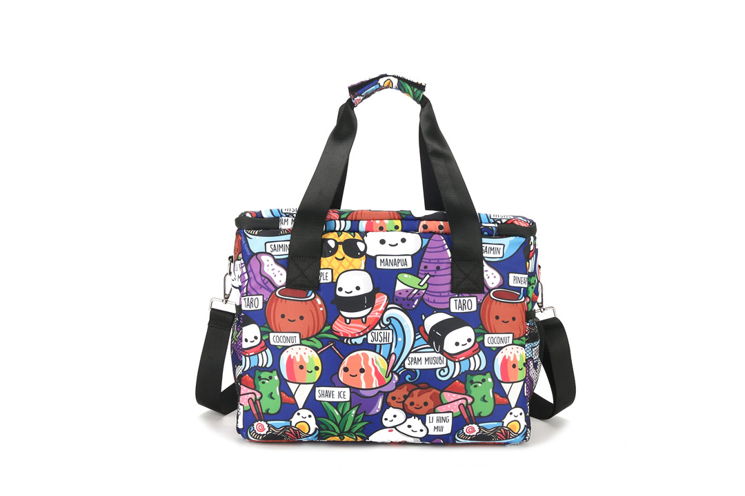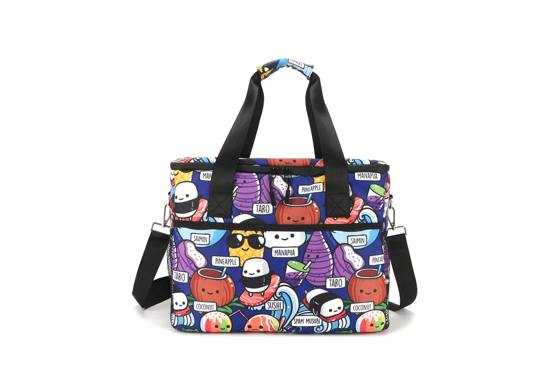 If you are going to the beach or just a small party at a friends house this cooler tote will be your go to for keeping your drinks and food fresh for hours. This cooler tote is supported with double strap handles, an adjustable shoulder strap that is removable, a two-way zipper for easy access to the main compartment, two outer mesh pockets for extra storage, and in our exclusive Craving Hawaiʻi print in blue.