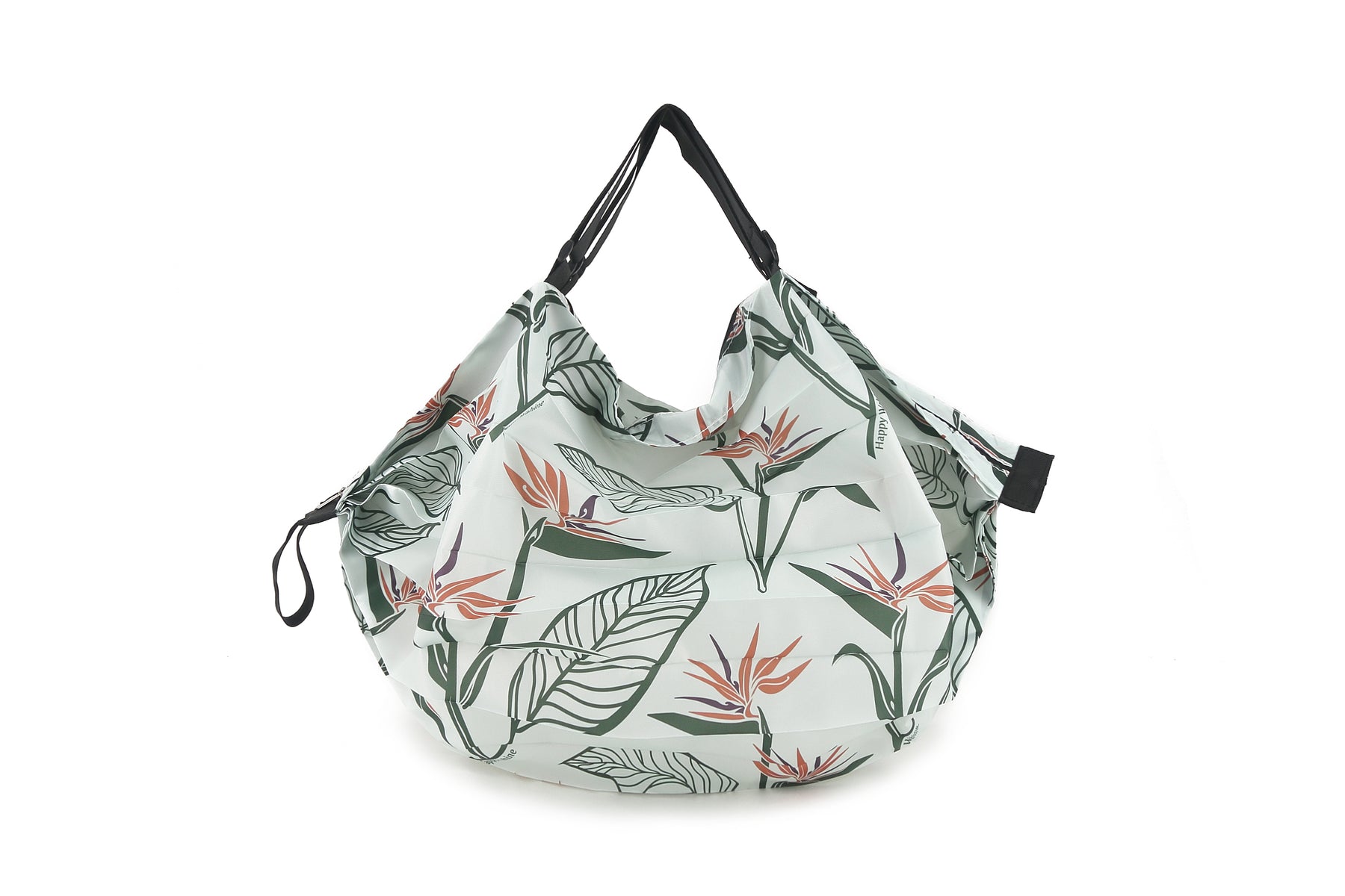 Discover the convenience of the Foldable Bag Jazmine Birds of Paradise Beige! Effortlessly shop with style, and when you're done, simply pull the edges and roll it up for quick and compact storage. It’s that easy!
